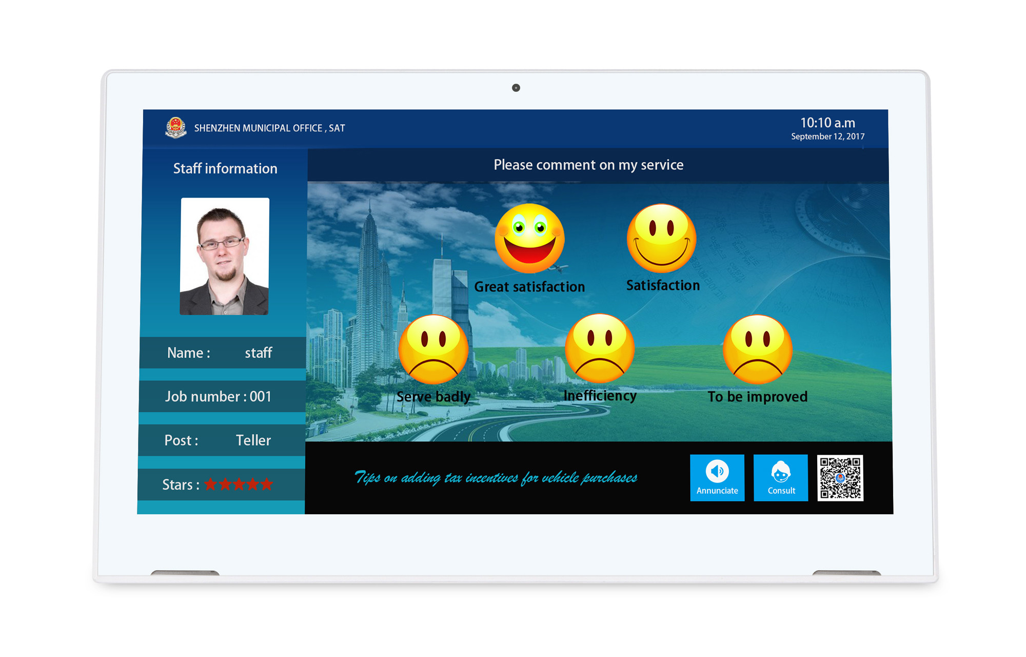 مجهزة بكاميرا أمامية مقاس 2.0 ميجابيكسل، يدعم هذا الجهاز اللوحي مكالمات فيديو سلسة وواضحة، واجتماعات عن بعد، وتفاعلات العملاء وجها لوجه.الطلب عن بعدأو خدمة العملاء القائمة على الفيديو في المطاعم ومحلات البيع بالتجزئة والرعاية الصحية والمؤسسات التعليمية.توفر الكاميرا نوعية صورة متوازنة مع الحفاظ على استجابة سريعة وانخفاض استهلاك الطاقة.