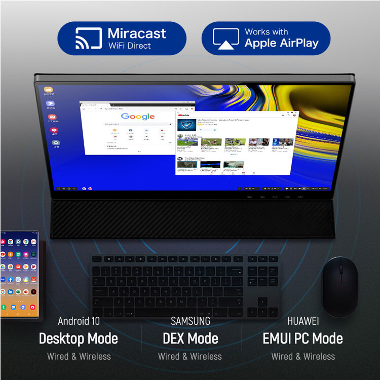 يمكن استخدام هذا الشاشة كشاشة عرض ممتدة لأنظمة Mac، مع دعم كل من الاتصالات السلكية واللاسلكية للتكيف مع بيئات العمل المختلفة. من خلال Apple AirPlay، يمكن للمستخدمين عكس أو تمديد شاشة Mac الخاصة بهم لاسلكيًا لإعدادات مرنة، بينما يوفر Thunderbolt 3 خيارًا سلكيًا مستقرًا للحصول على أداء أعلى وزمن وصول أقل. بالاقتران مع دعم اللمس الفردي لنظام التشغيل macOS، فإنه يوفر تجربة مستخدم سلسة وبديهية، مما يجعله مناسبًا للمكاتب واستوديوهات الإبداع والعروض التوضيحية ومحطات العمل الاحترافية حيث تكون الكفاءة ومرونة الاتصال مهمة.