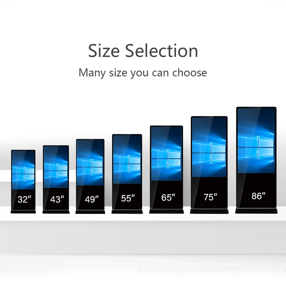 بفضل شاشة عرض كاملة الحجم مقاس 43 بوصة، يجذب الكشك الانتباه بشكل طبيعي في المناطق ذات الازدحام الشديد مثل مراكز التسوق وسلاسل البيع بالتجزئة وردهات الفنادق والمطارات ومساحات العرض. تعمل إضافة اللمس السعوي على تحويل الشاشة إلى واجهة تفاعلية، مما يسمح للعملاء بتصفح المحتوى أو الوصول إلى العروض الترويجية أو التعامل مع الخدمات مباشرة.